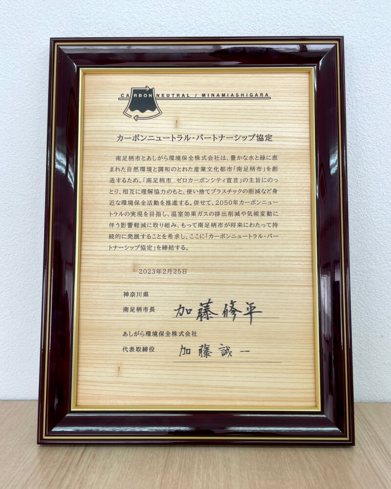 2023年2月25日、当社は南足柄市と「カーボンニュートラル・パートナーシップ協定」を締結しました。
