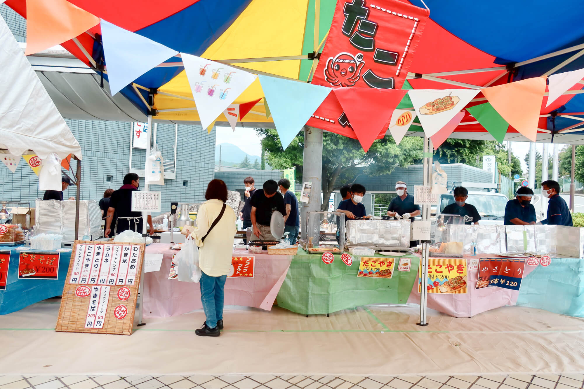 たこやきや焼きそば、かき氷、わたあめ等の屋台を当社社員一丸となってお手伝いし、大変多くの方にご来店・ご好評いただきました。