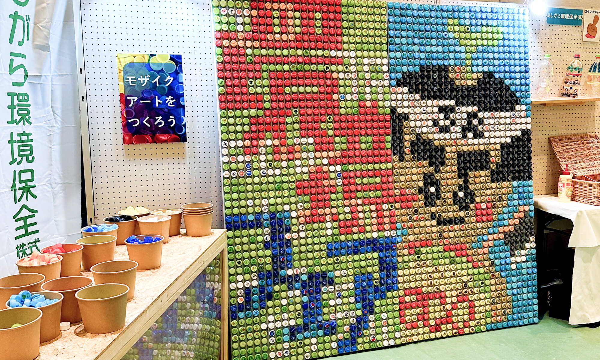 「第28回南足柄市環境フェア」の会期中にペットボトルキャップを使ってモザイクアートを来場者の皆様と制作しました。