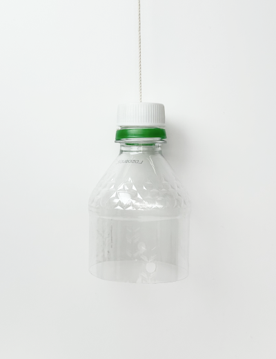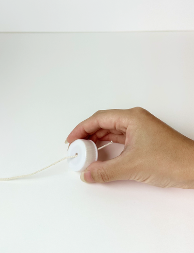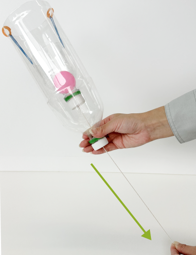 たこ糸のはしをペットボトル小の口にまき付けて、 キャップをしめます。
